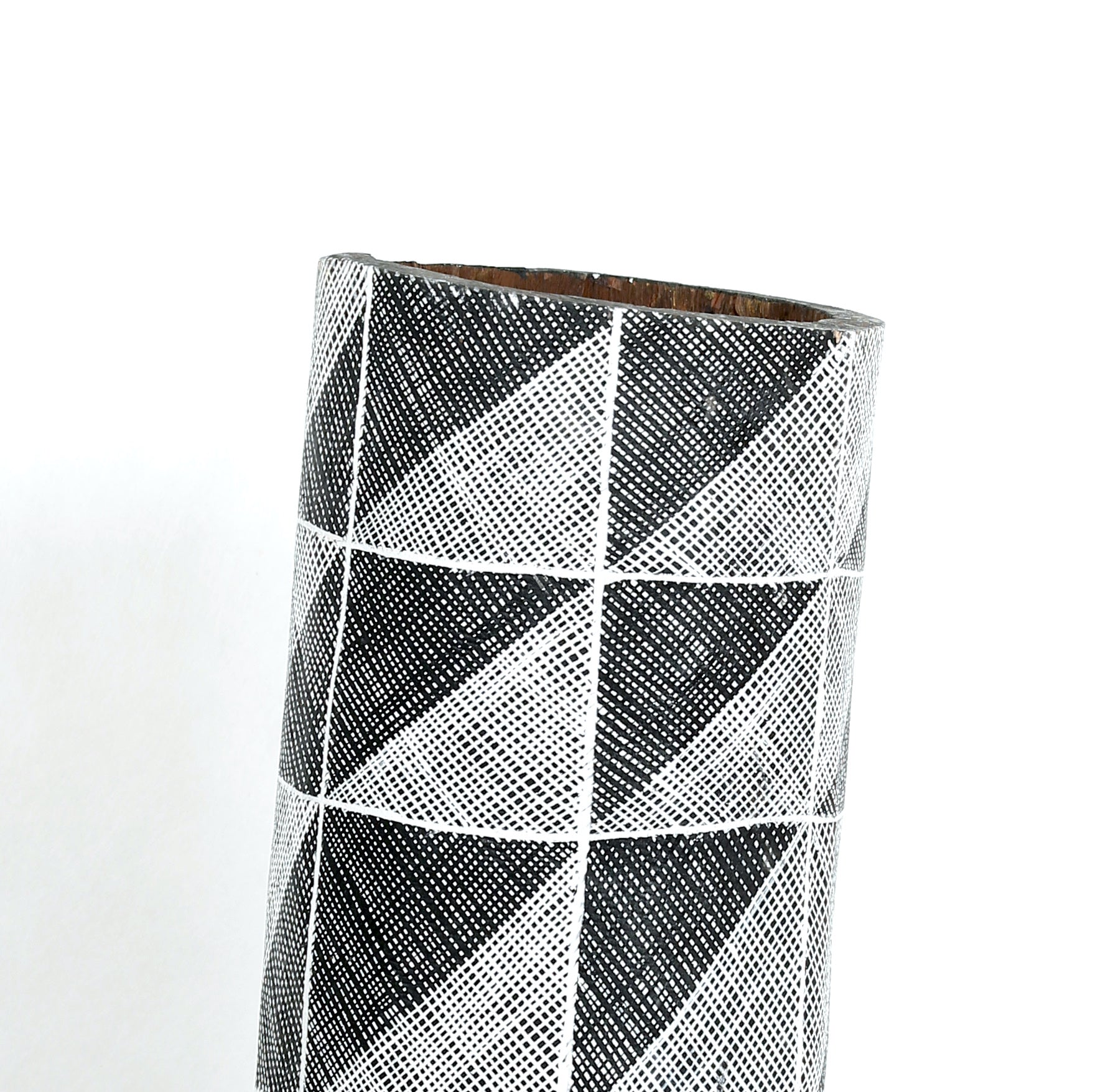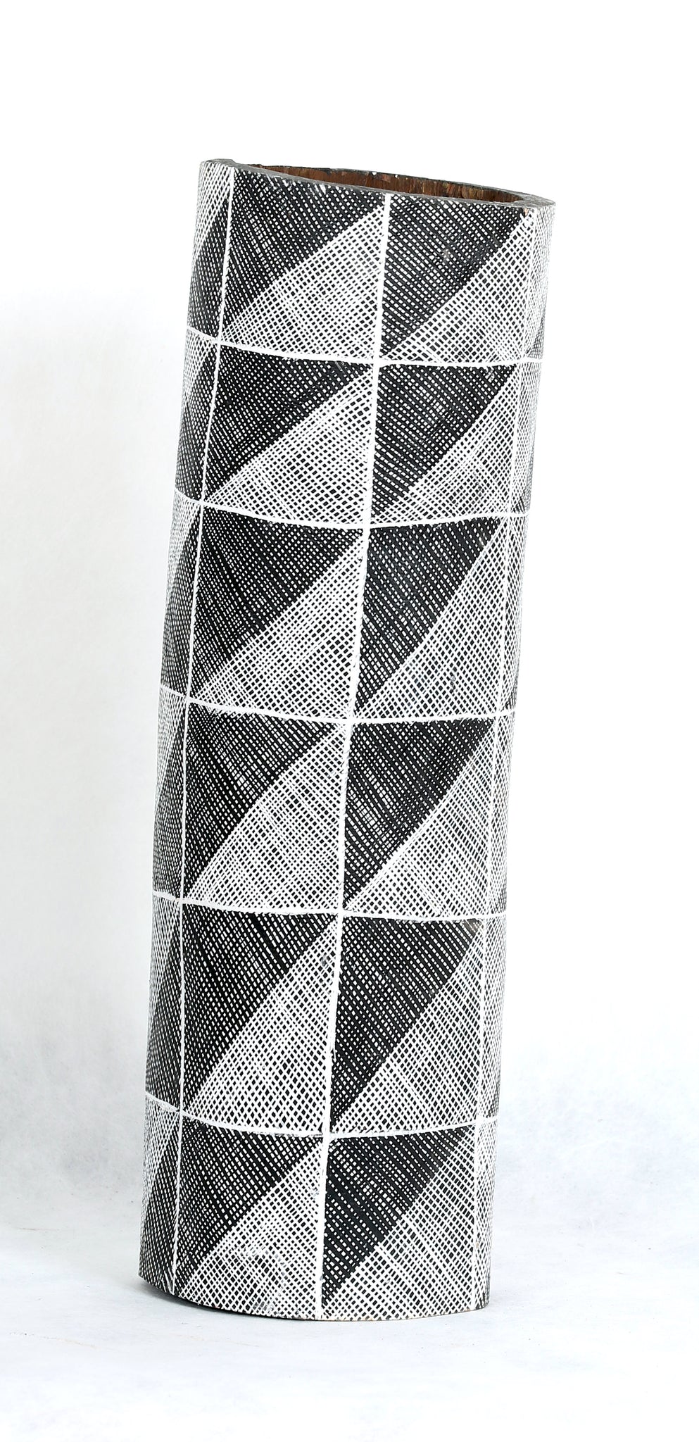 L'artiste a réalisé une sculpture d'un Tronc Funéraire portant des motifs de clan et des marqueurs stylistiques qui lui sont propres.