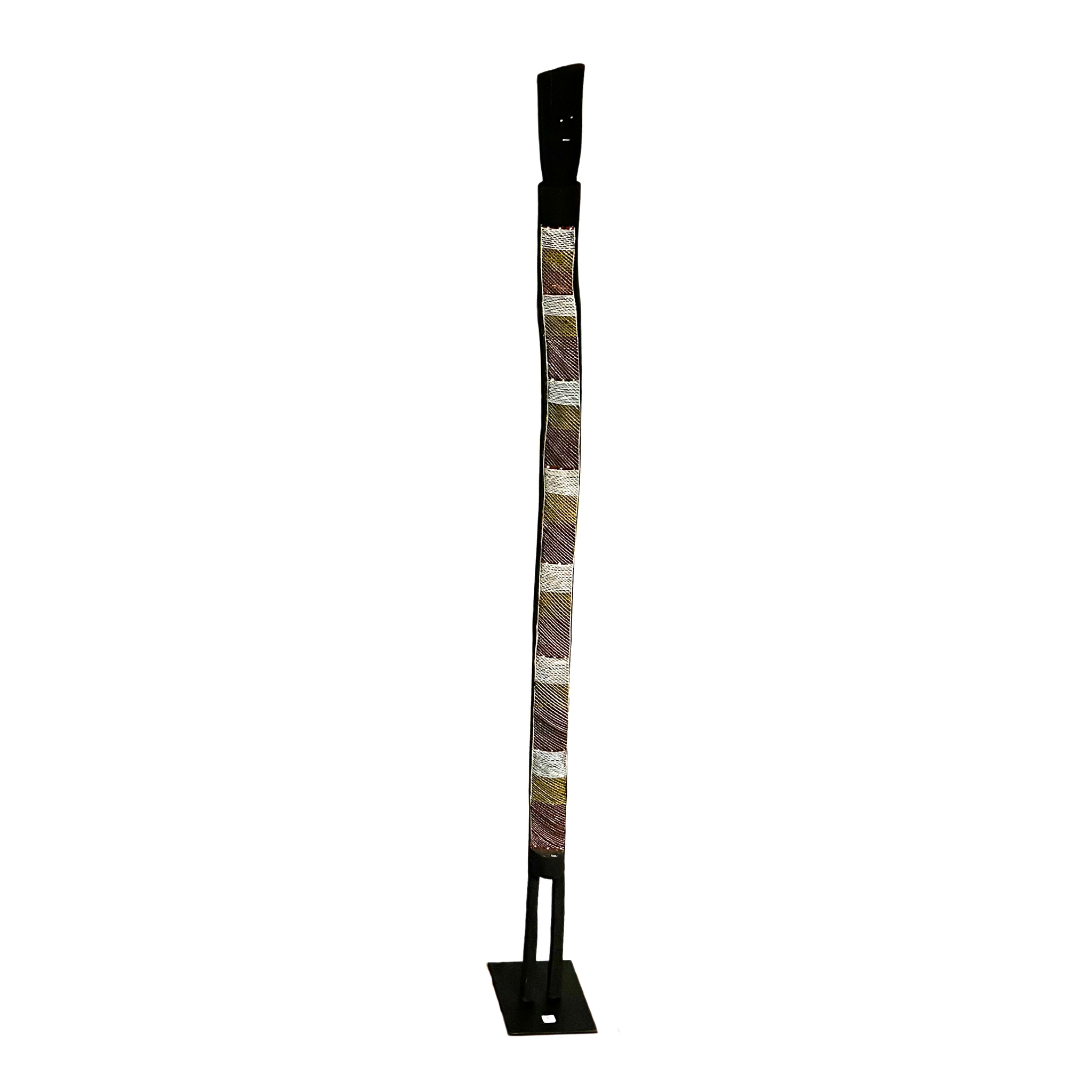 L'artiste a réalisé une sculpture d'un Esprit Mimih portant des motifs de clan et des marqueurs stylistiques qui lui sont propres.
