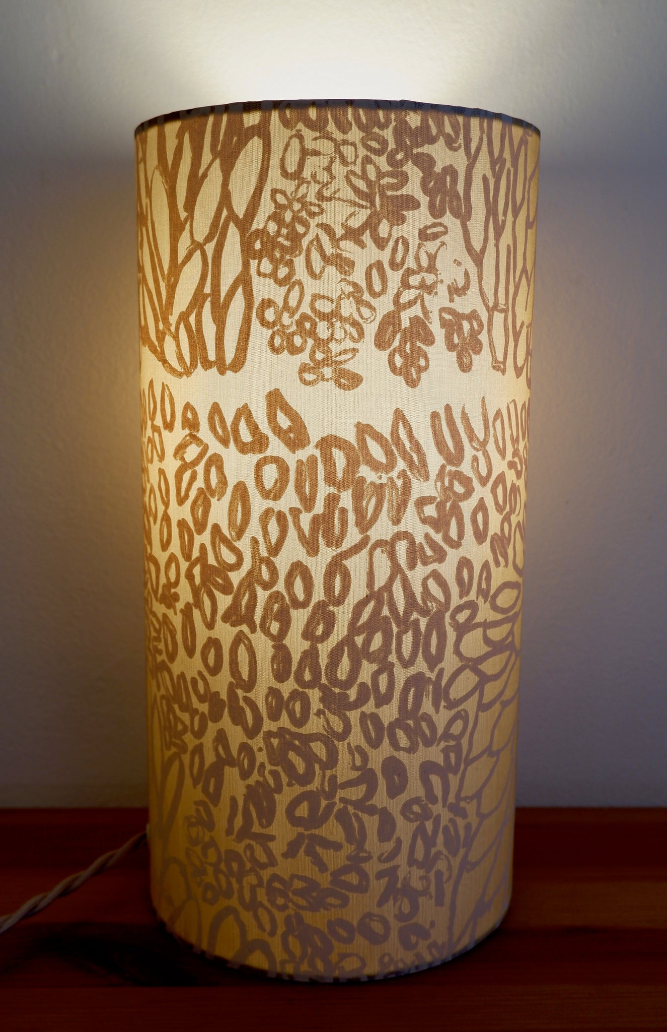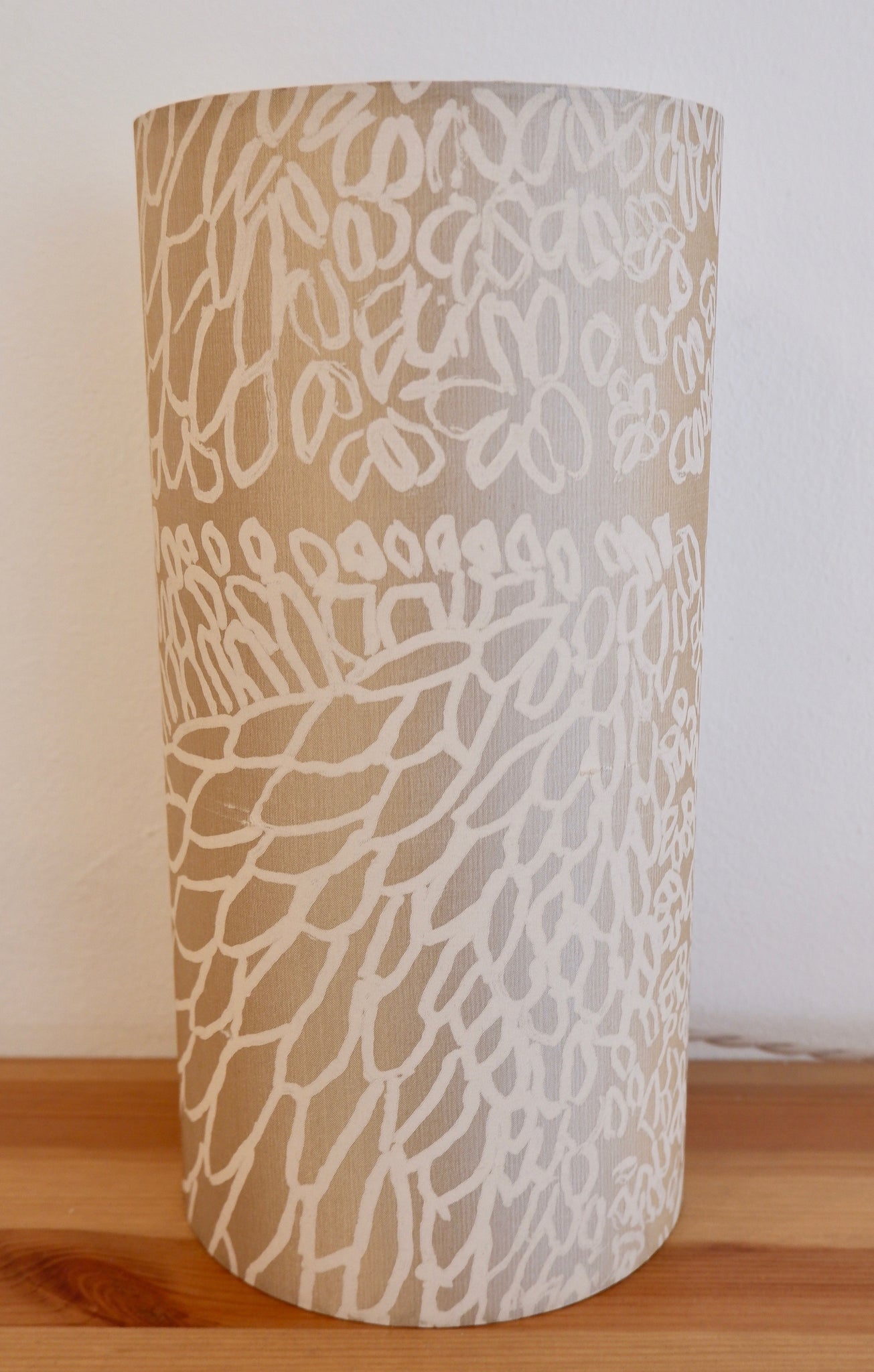 Fabric: Art screen printing on dark beige silk, hand-printed with eco-friendly inks by the female artists of 'Bàbbarra Women's Centre' in Maningrida (Arnhem Land-Australia)