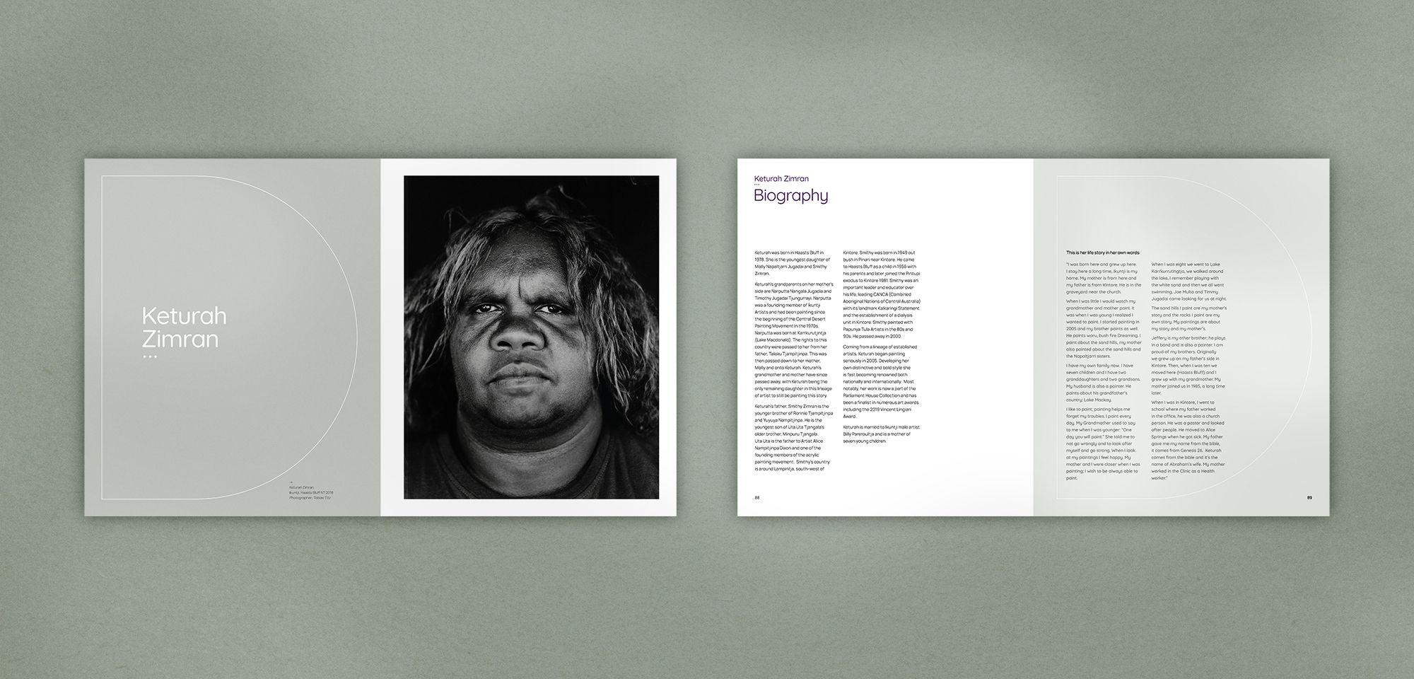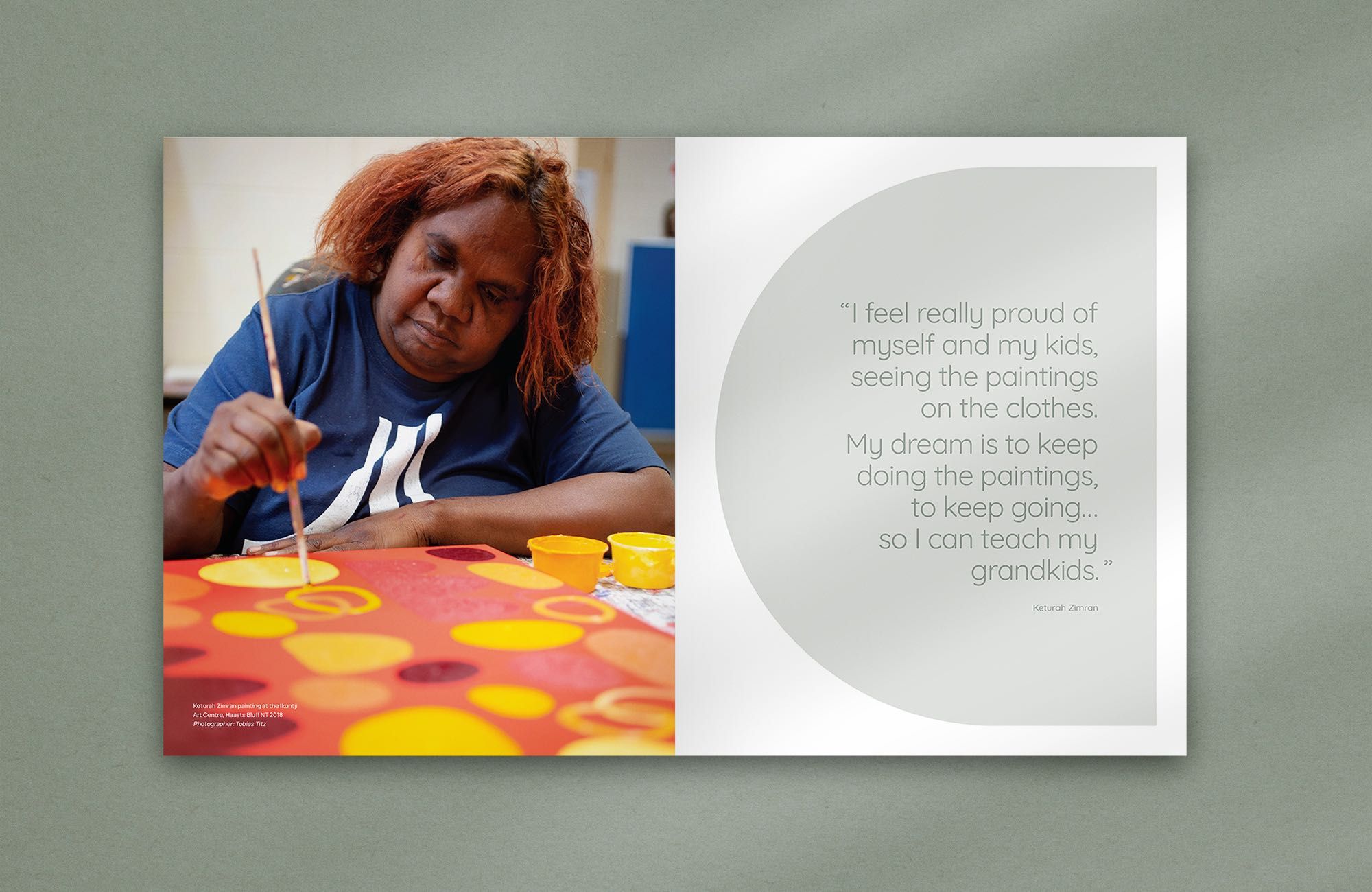 The texts included include interviews with the artists in Luritja and English, texts from experts in the field of textile design, as well as texts from collaborators and staff who have made this journey with the cooperative.